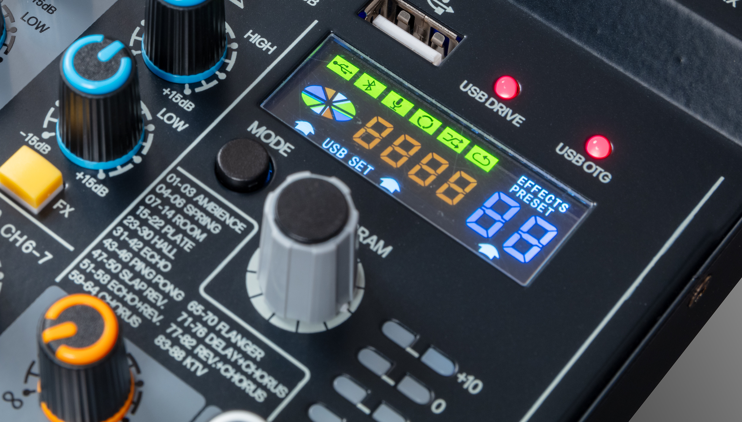 Motor de multi-efeitos digitais com 88 presets de qualidade profissional